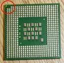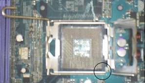 Perhatikan soket pada procesor anda dipojok procesor anda ada sebuah titik sigitiga yang kosong kemudian lihat juga di mainboard anda disitu juga terdapat sebuah titik segitiga itulah titik temu antara procesor dan mainboard. Kemudian bukalah pengaman procesor pada mainboard dengan cara tekan tuas dan geser (Ket. ini dikhususkan untuk komputer pentium IV model (LGA/Celeron)Lihat Gambar